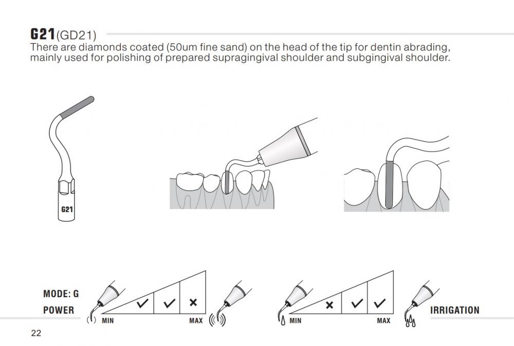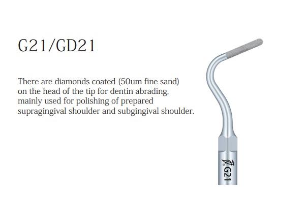 Vârf acoperit cu diamant (diamant 50um) pentru abrazirea dentinei. Utiliza la finisarea si la prepararea supragingivală, a preparatiilor cu prag si după utilizarea frotei dentare pentru prepararea subgingivală cu prag