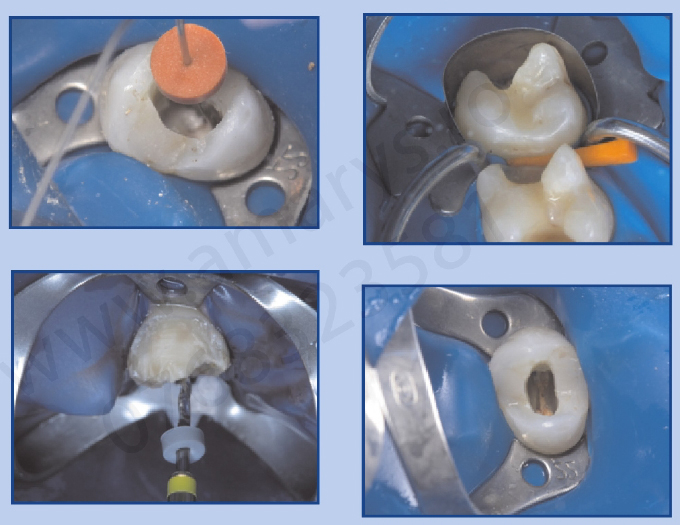 (winged clamp with angular „jaws”, for molars with damaged coronal part or mesial paries)