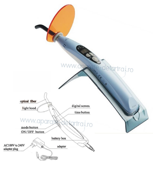 2. Este destinata utilizarii medicilor dentisti. Cu functie de accelerare a razei ce actioneaza asupra compozitului cat si pentru produsele de albire a dintilor.