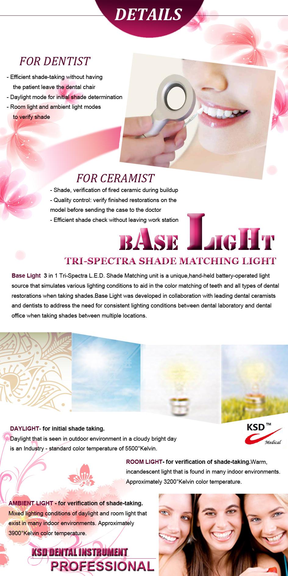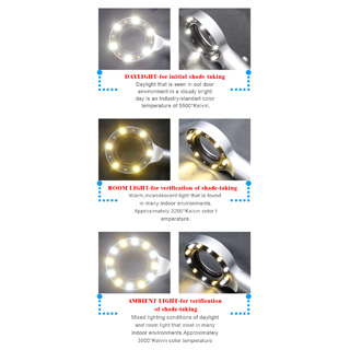 - Ideal pentru a lua culoarea dintilor, pentru alegerea compozitului in realizarea obturatiilor frontale cat si a dintilor posteriori. Puteti realiza obturatii din compozit mai usor deaorece orice detaliu se vede foarte clar, iar umbrele nu sunt prezente deoarece componenta cu cele 12 leduri sunt distribuite intr un cerc.