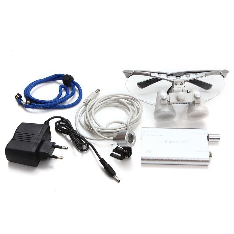 Lupele dentare sunt dotate cu o sursă proprie de lumină. Modelul nou dispune de o lampă LED ataşată sistemului de prindere a lupelor, alimentată printr-un cablu de la un acumulator reîncărcabil din care poate fi reglata intensitatea dorita.