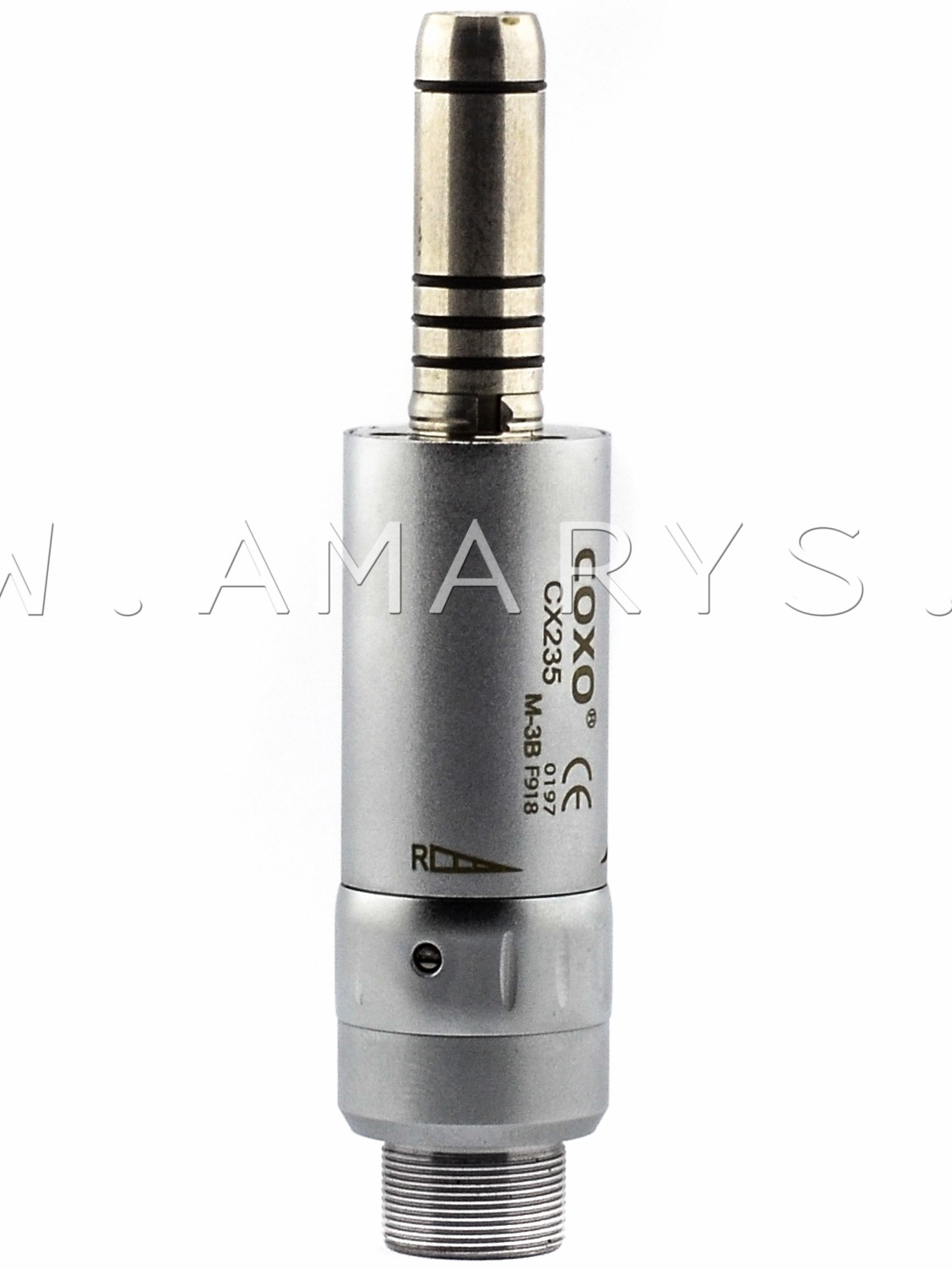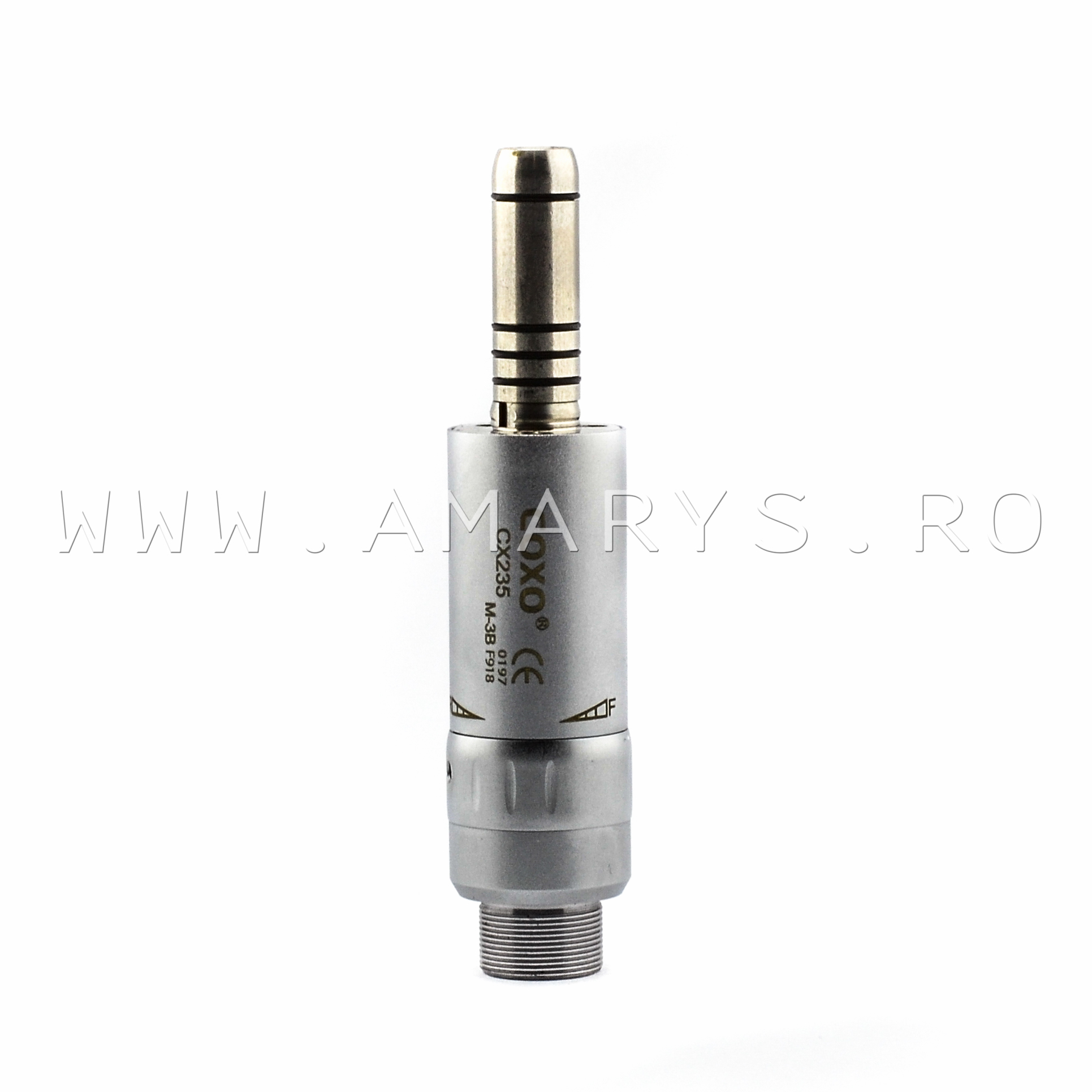 Acest micromotor asigura racire cu apa prin interiorul piesei. La acest micromotor puteti conecta orice piesa tip contraunghi sau piesa dreapta. Pentru a beneficia de racire interna cu apa trebuie sa conectati o piesa cot sau piesa dreapta tot cu racire interna.