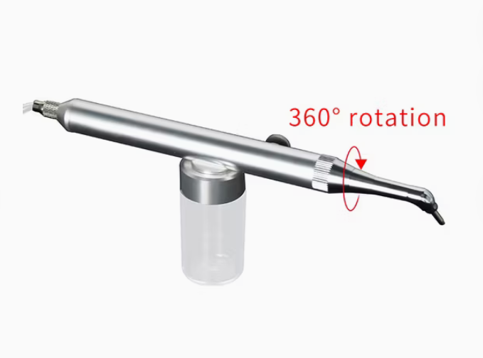 Sablator dentar pneumatic cu oxid de aluminiu utilizat pentru curatarea si gravajul suprafetelor dentare inainte de lucrari protetice, estetice, ortodontice.