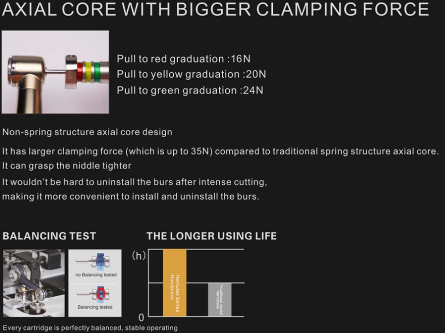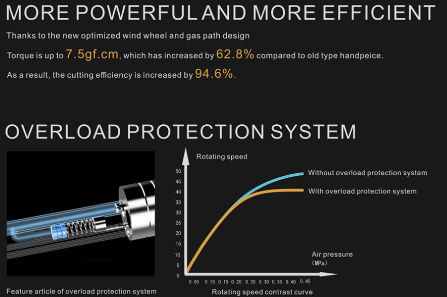 - > Îmbunătățiri la sistemul anti-retractie, evita infectarea rotorului si evita patrunderea salivei in interiorul turbinei
